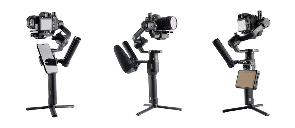 Лучшая эргономика позволяет снимать с ещё более низкого ракурса, снижая утомляемость при использования Ronin в течение длительного времени или во время ходьбы. Работает с любым типом малогабаритного штатива (оригинальный штатив DJI, штатив PGYTECH T2 или штатив стороннего производителя).
